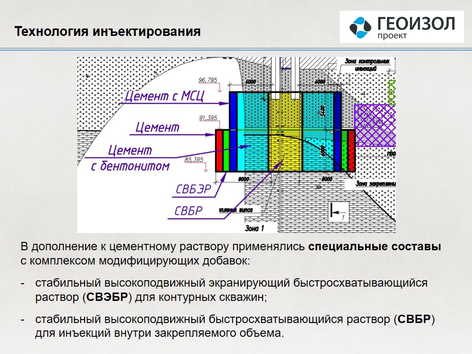 Для повышения экономической эффективности проект предусматривал комбинированное применение инъекционных составов.