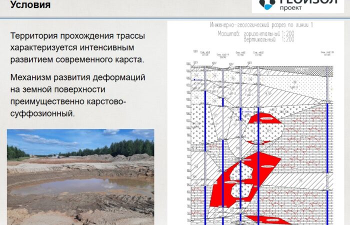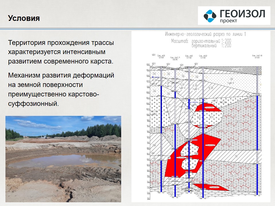 Территория Нижегородской области, по которой проходит строящаяся магистраль, характеризуется интенсивным развитием современного карста [1]. Механизм развития деформаций на земной поверхности преимущественно карстово-суффозионный. Карстующиеся грунты сложены известняками, доломитами, гипсами и ангидритами.