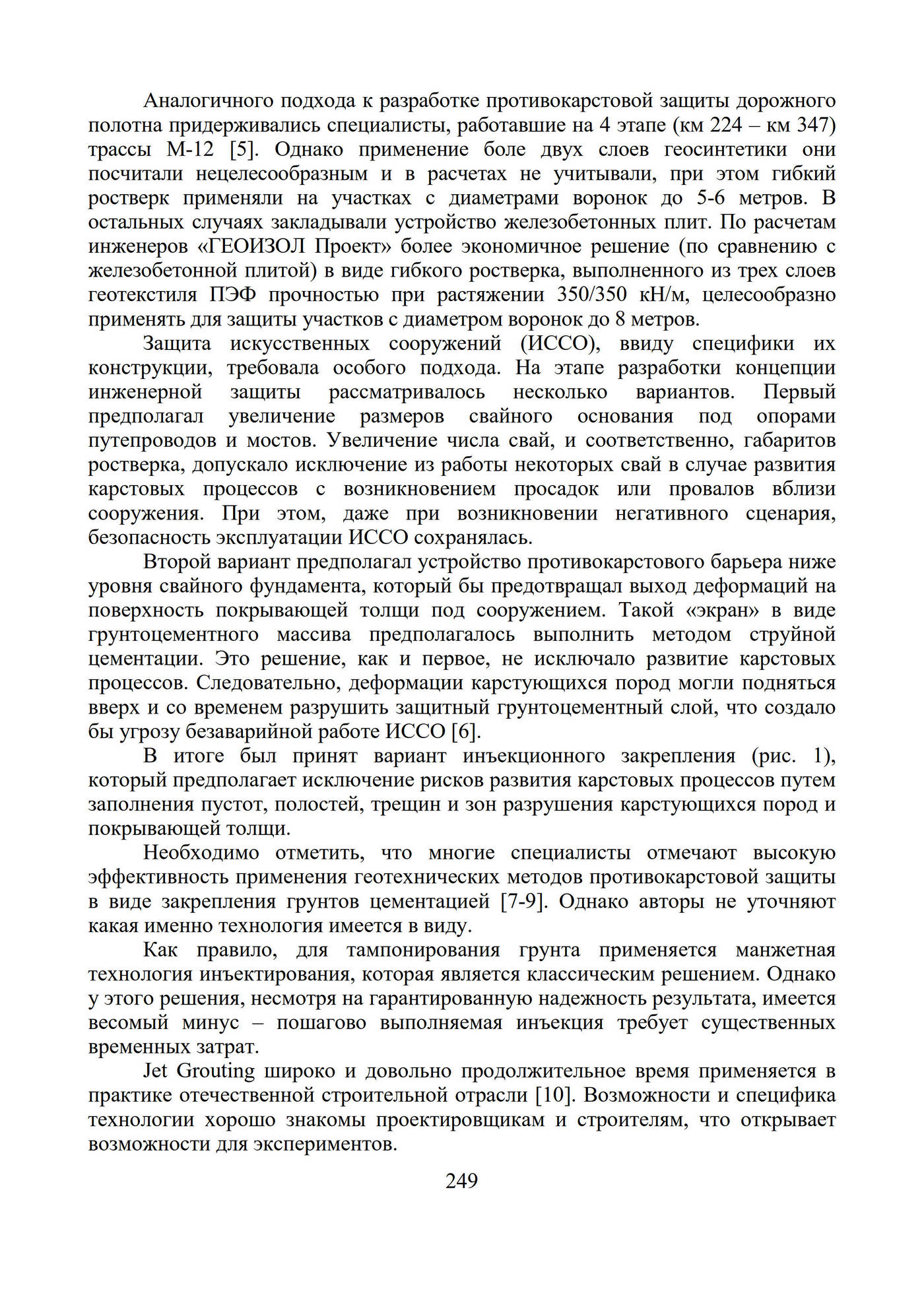 Необходимо отметить, что многие специалисты отмечают высокую эффективность применения геотехнических методов противокарстовой защиты в виде закрепления грунтов цементацией [7-9]. Однако авторы не уточняют какая именно технология имеется в виду.