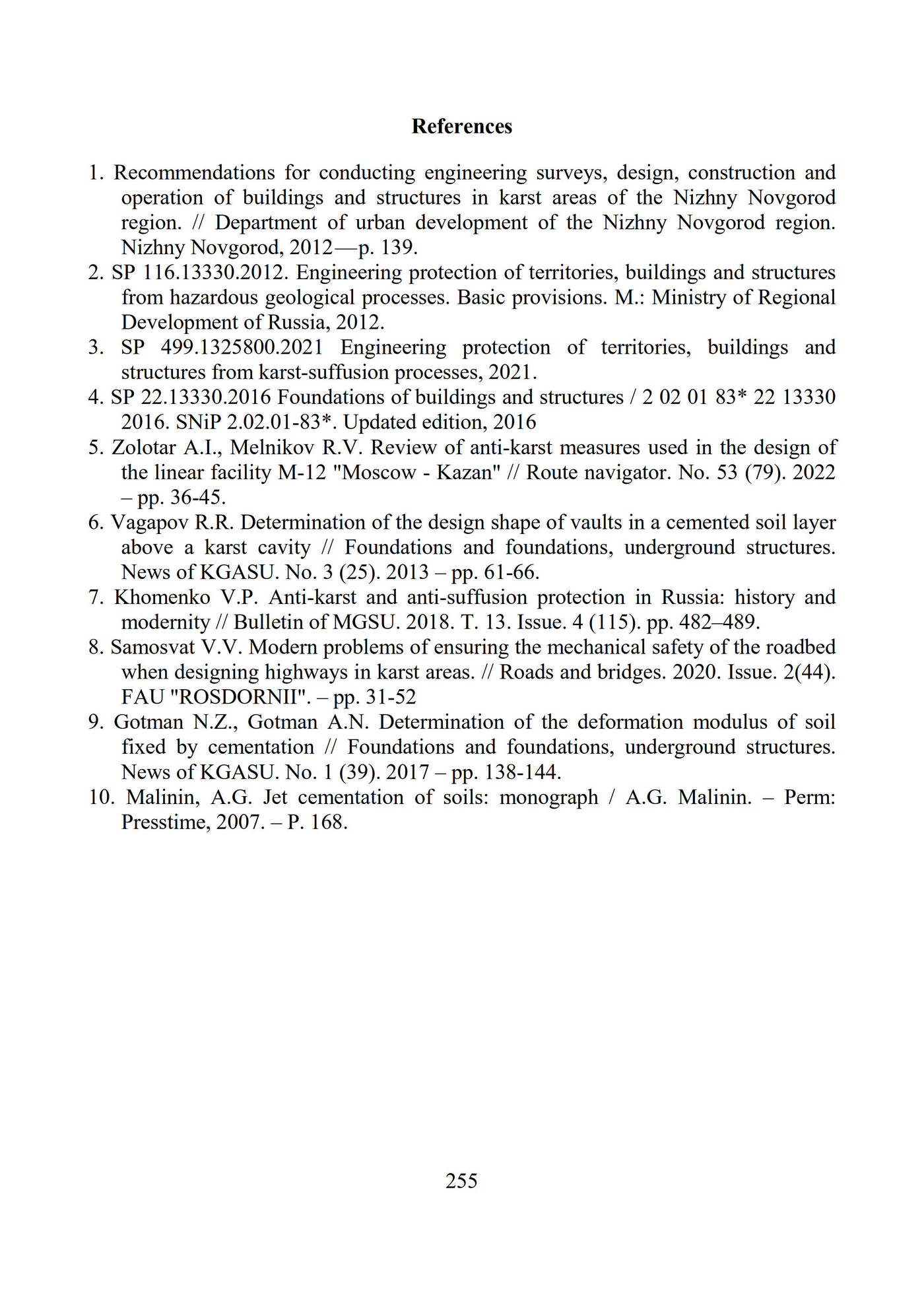 - Вагапов Р.Р. Определение расчетной формы сводов в сцементированной грунтовой толще над карстовой полостью // Основания и фундаменты, подземные сооружения. Известия КГАСУ. №3 (25). 2013 г. — С. 61-66.